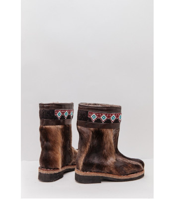 Унты детские темные с отделкой из ручного бисера
