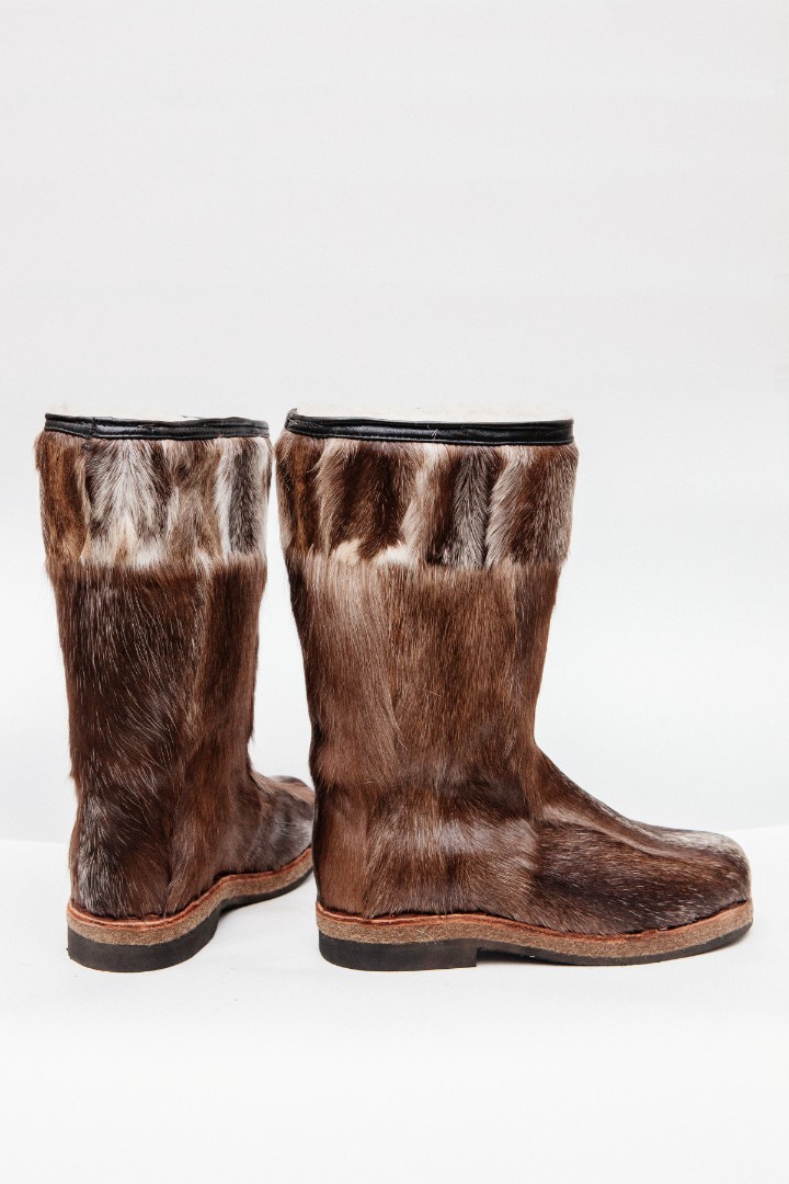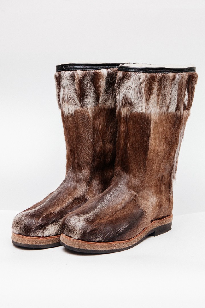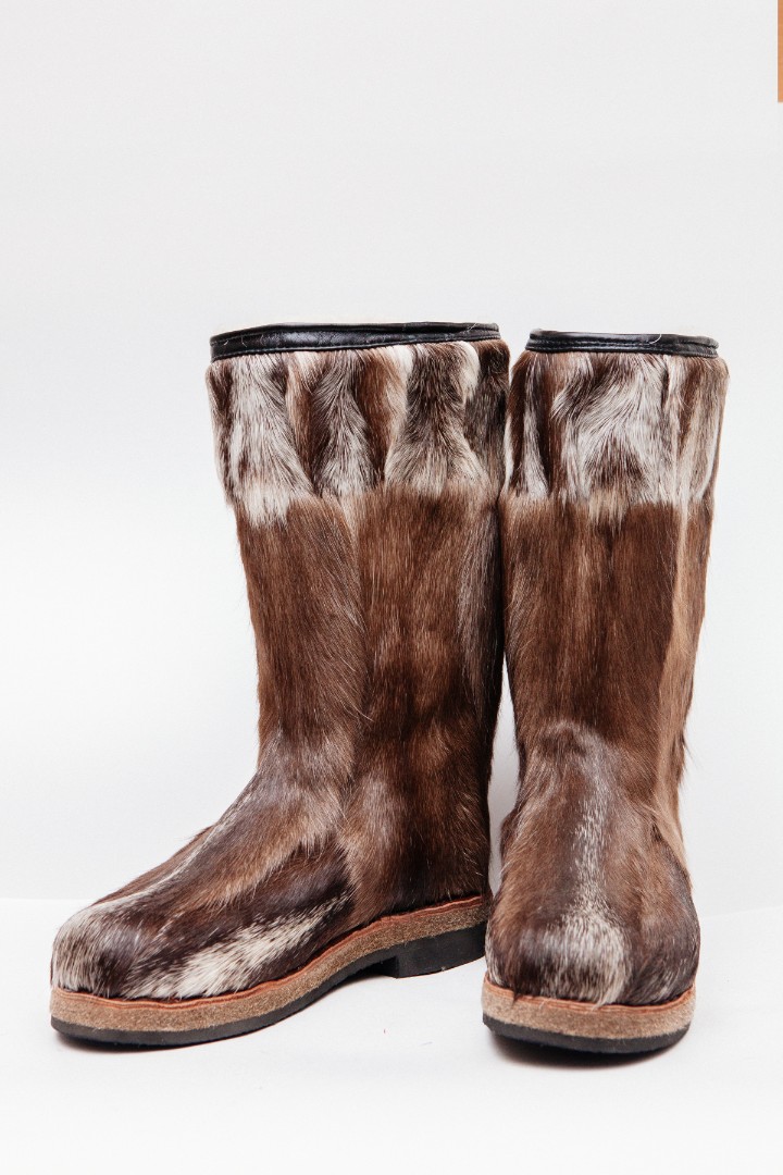 Унты из камуса северного оленя декорированной натуральной отделкой камуса