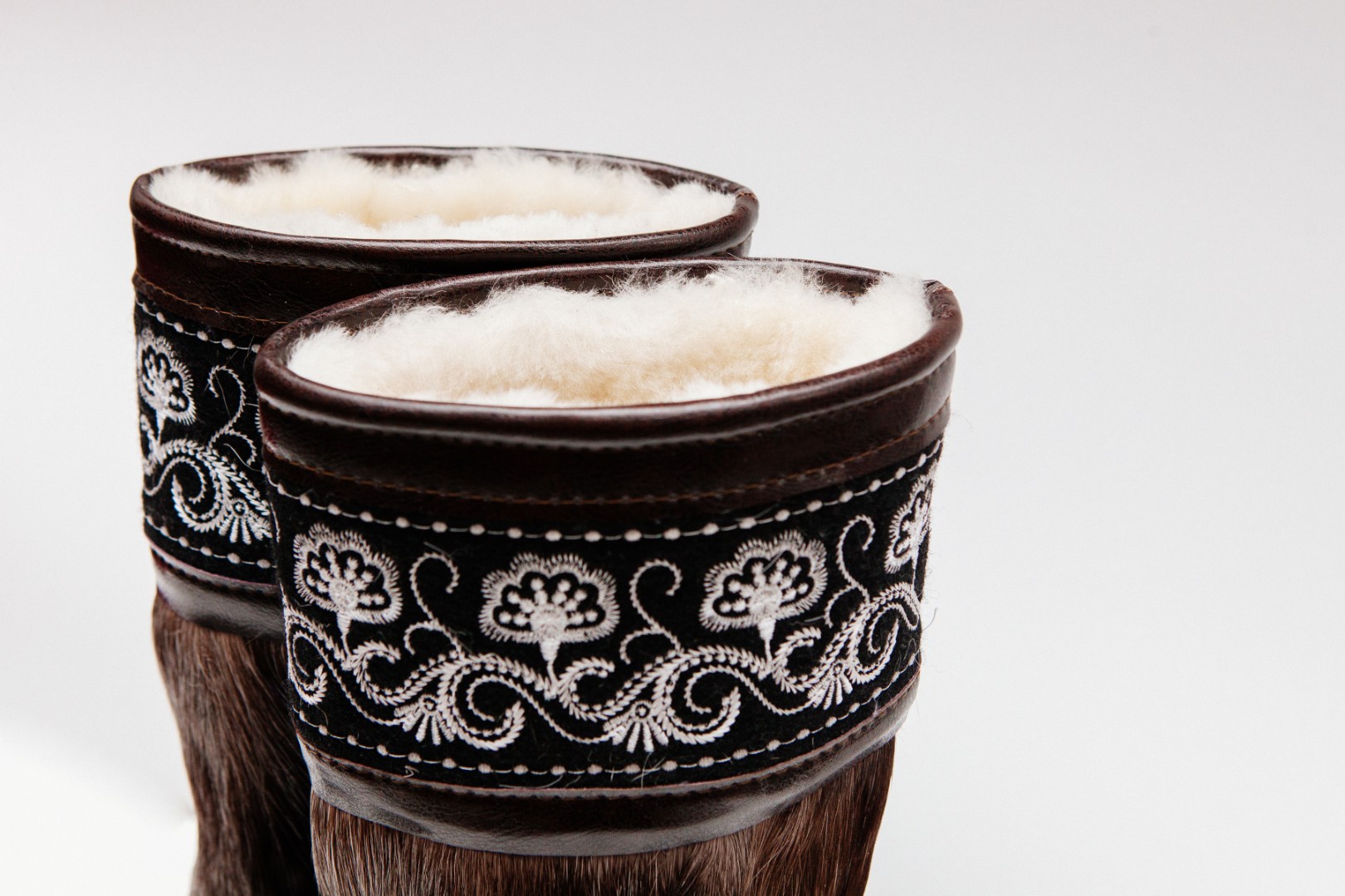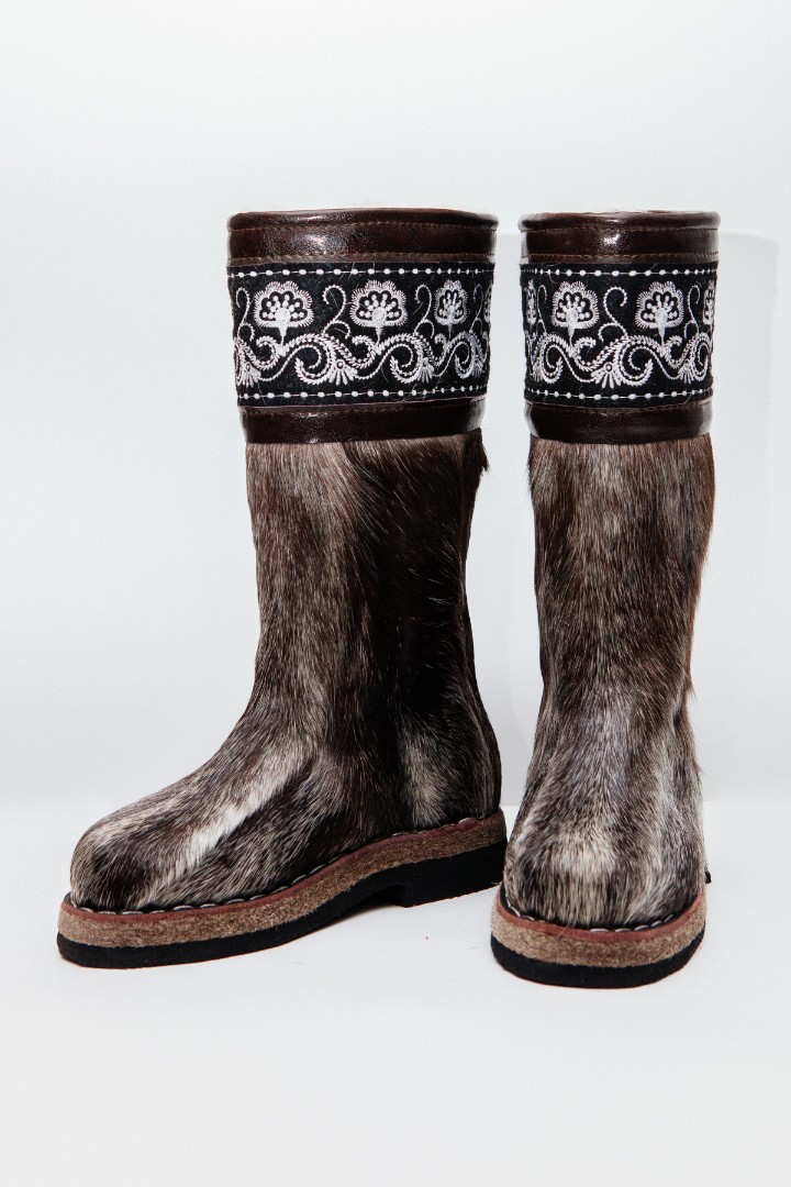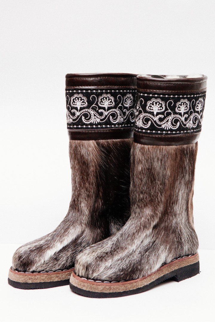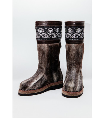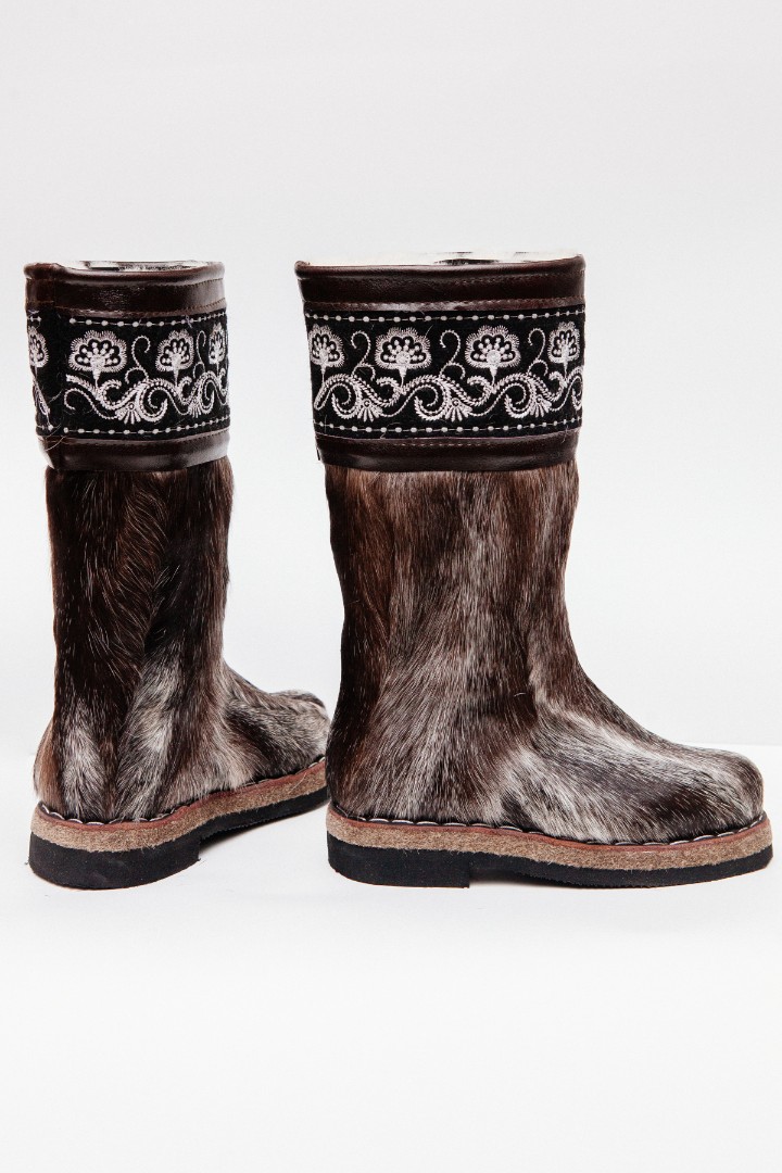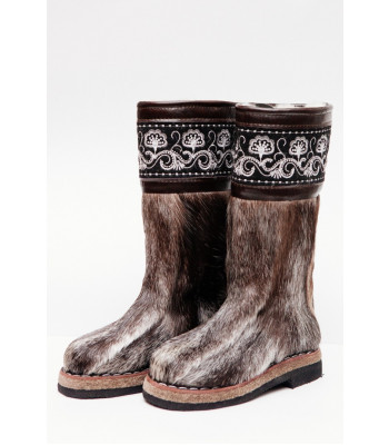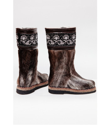 Унты из камуса северного оленя (светлый редкий оттенок) декорированной натуральной отделкой камуса