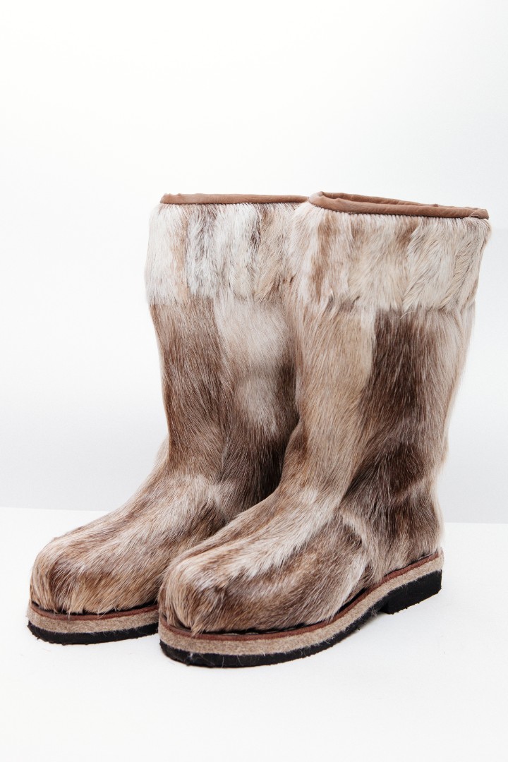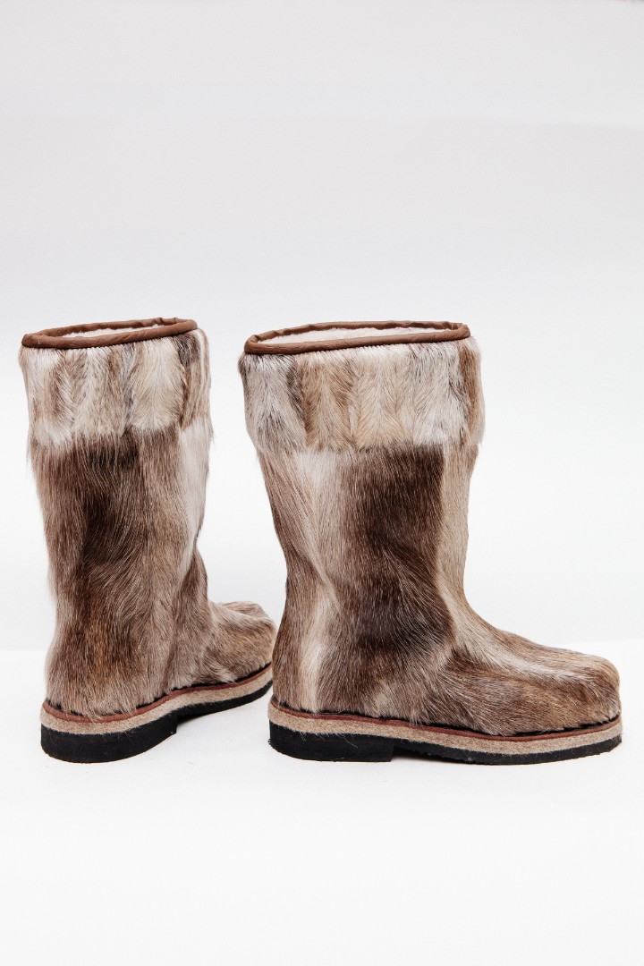 Унты из камуса северного оленя (светлый редкий оттенок) декорированной натуральной отделкой камуса