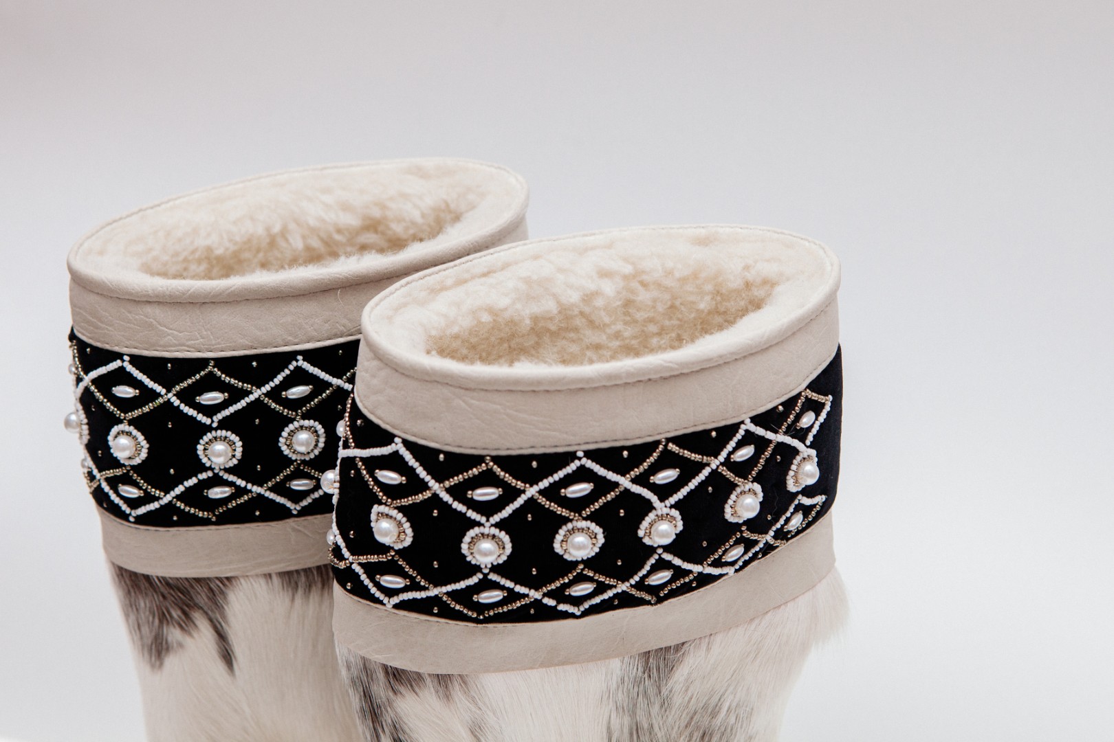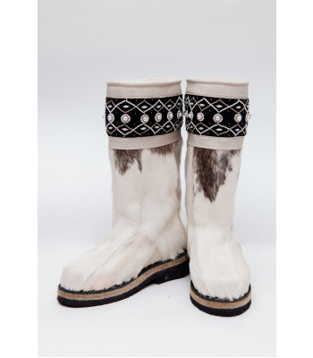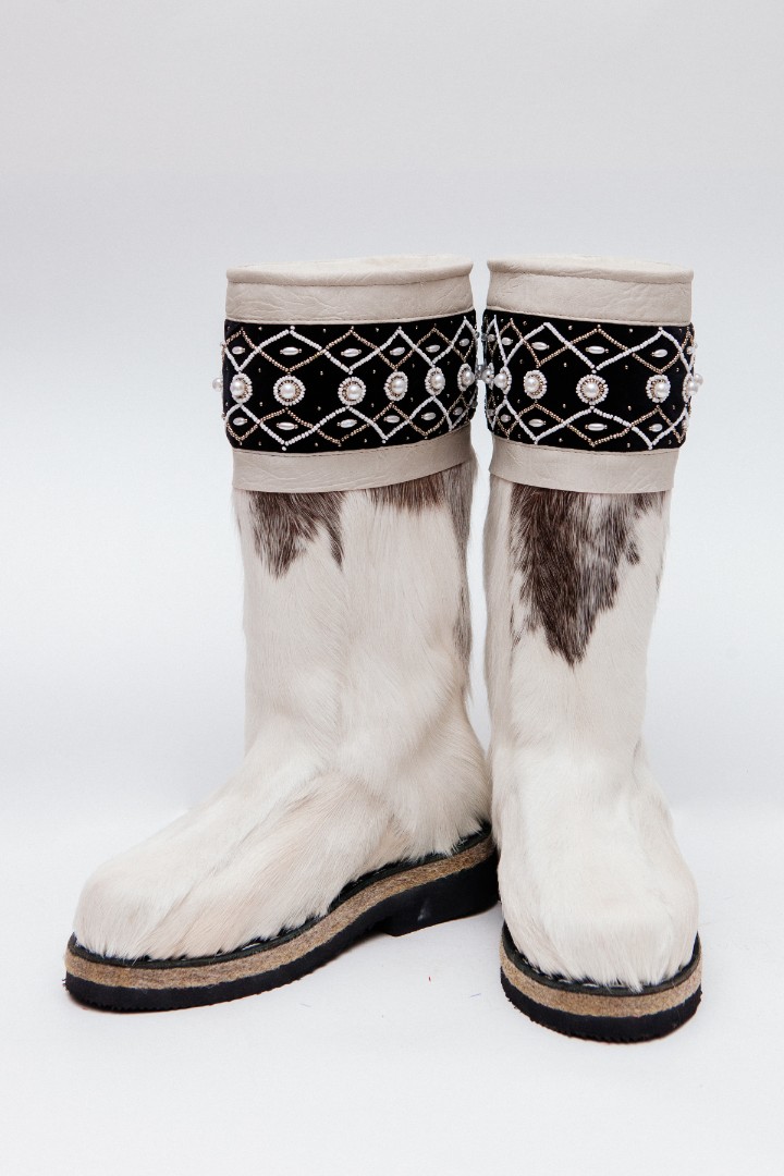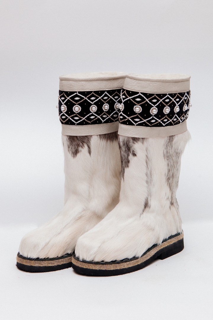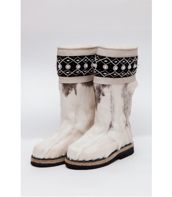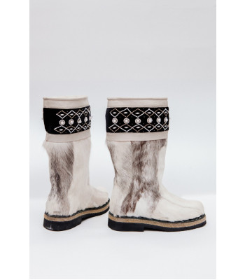 Унты из камуса северного оленя (светлый редкий оттенок) декорированной натуральной отделкой камуса