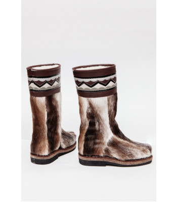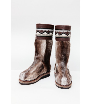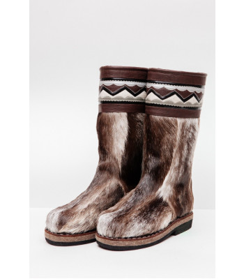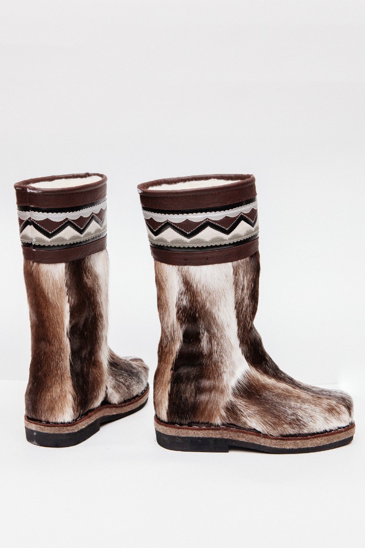 Унты из камуса северного оленя (светлый редкий оттенок) декорированной натуральной отделкой камуса