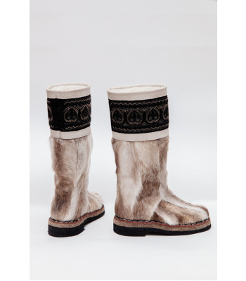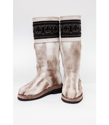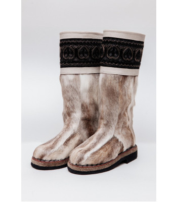 Унты из камуса северного оленя (светлый редкий оттенок) декорированной натуральной отделкой камуса