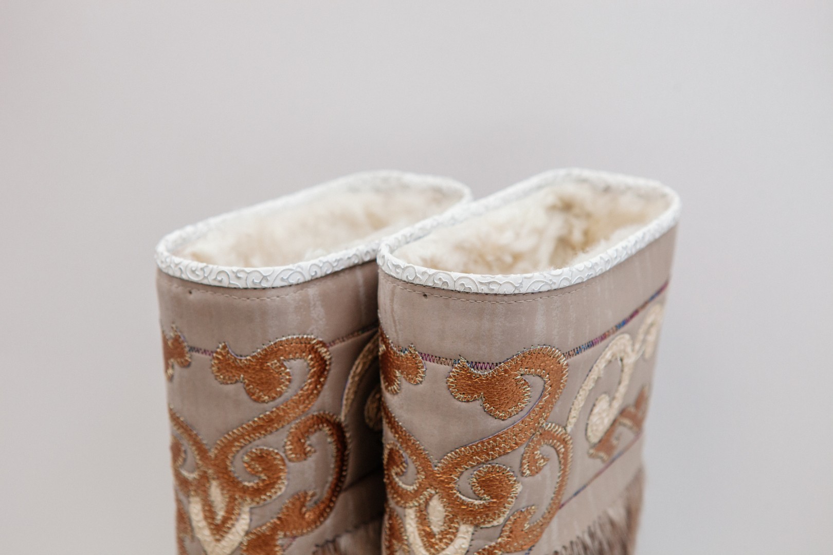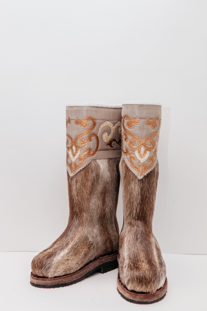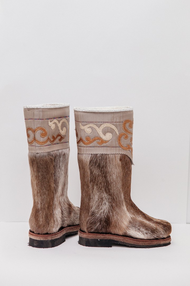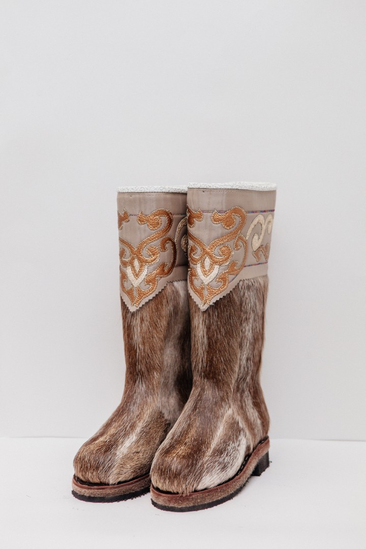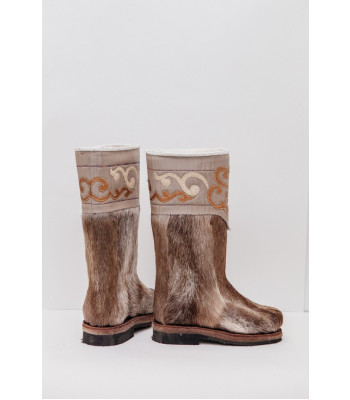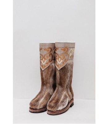 Унты из камуса северного оленя (светлый редкий оттенок) декорированной натуральной отделкой камуса