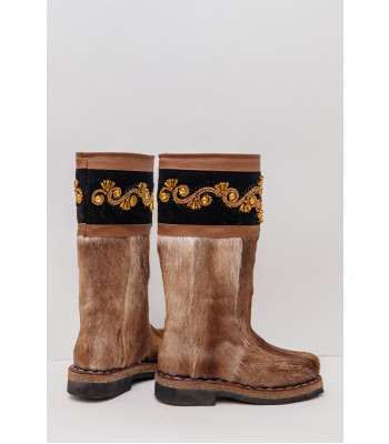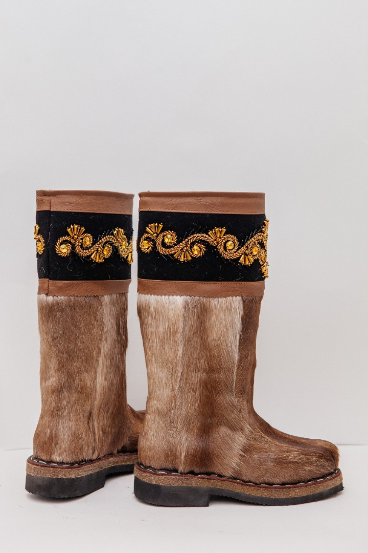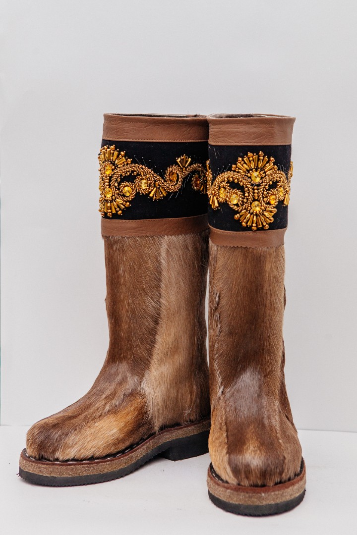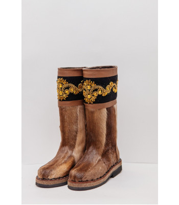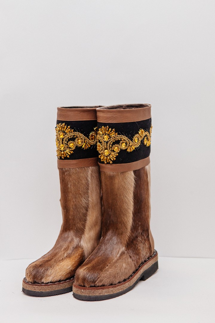 Унты из камуса северного оленя (светлый редкий оттенок) декорированной ручной вышивкой и бисером