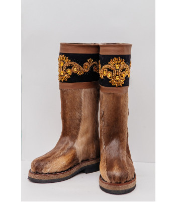 Унты женские орех с отделкой из ручного бисера