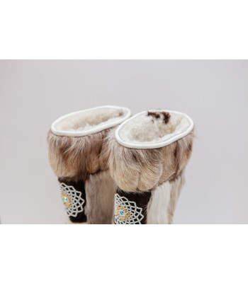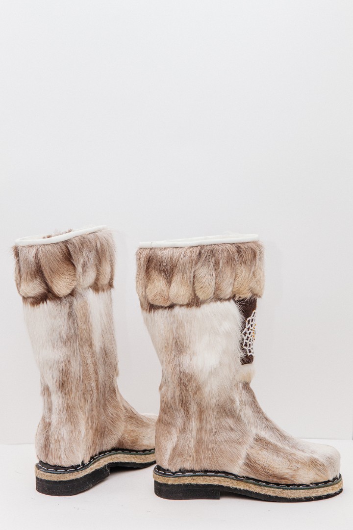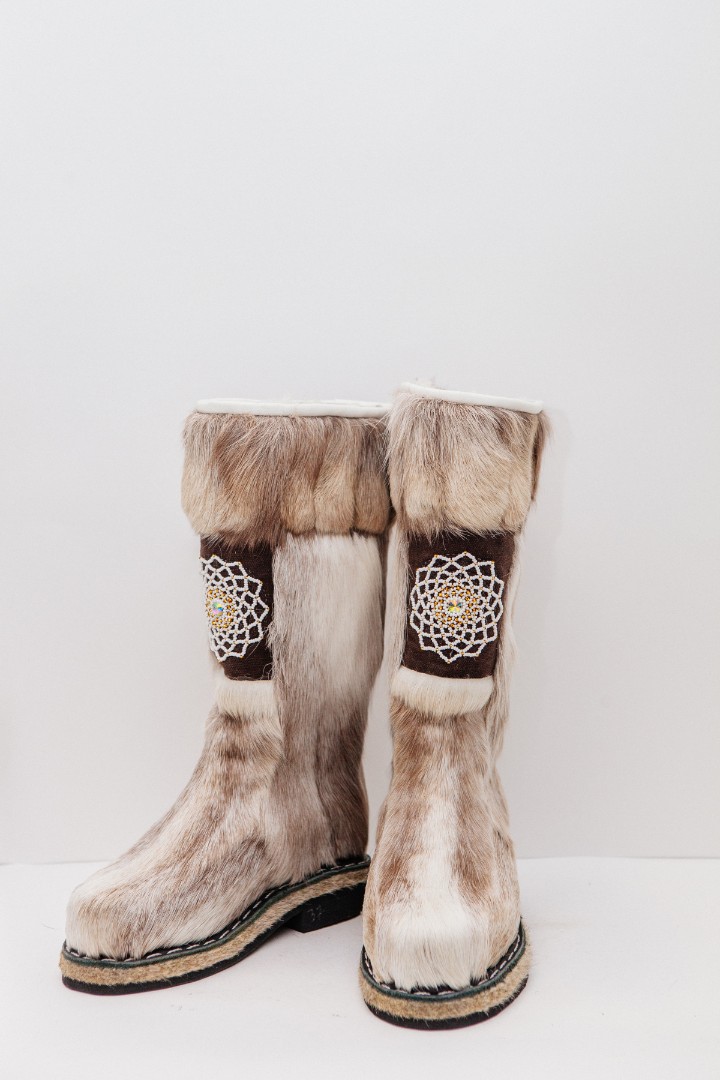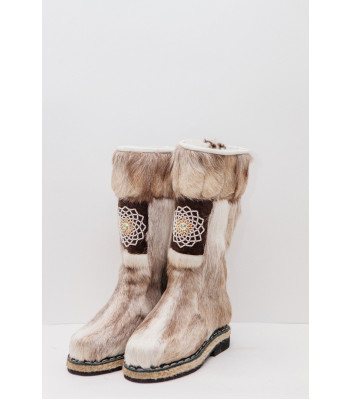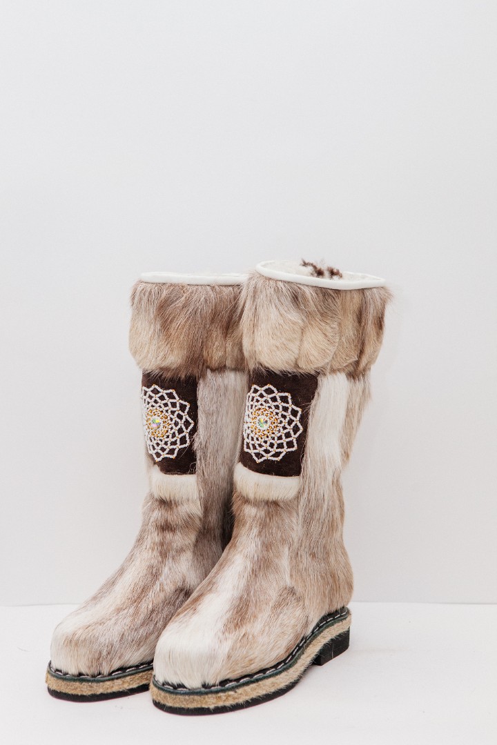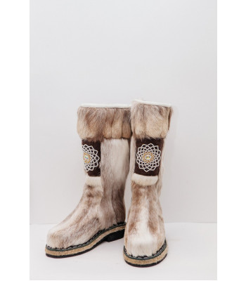 Унты из камуса северного оленя (светлый редкий оттенок) декорированной ручной вышивкой и бисером