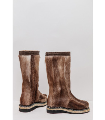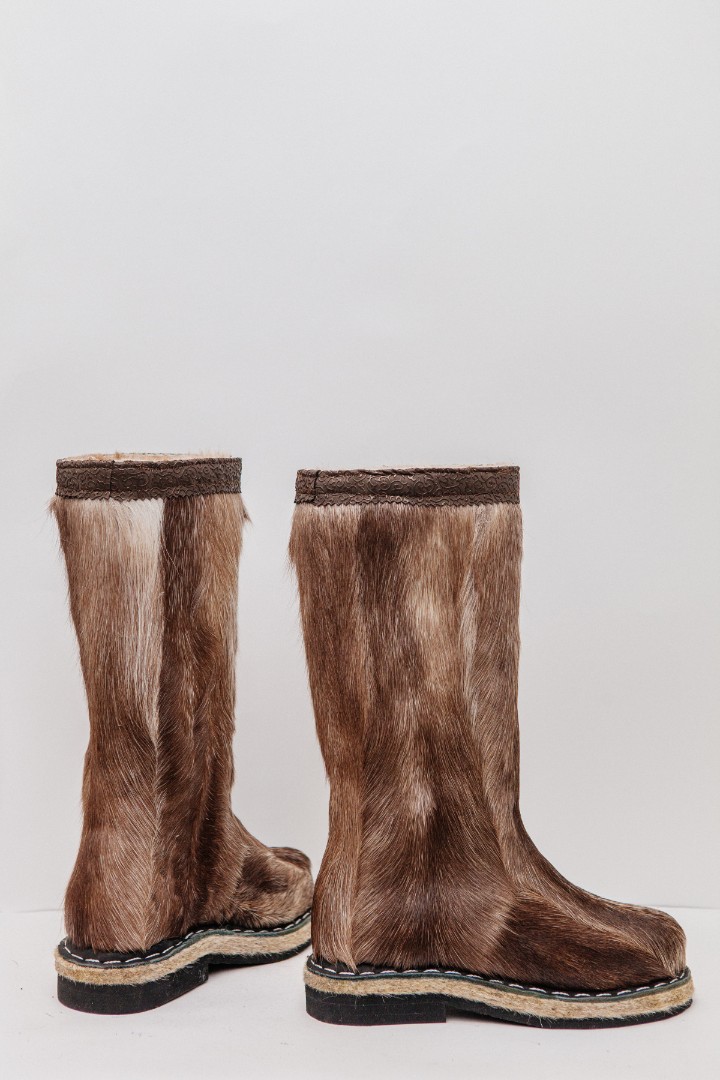 Классические унты изготавливаются из оленьих лап, а именно из шкуры нижней части ног оленя или так называемых, камусов. Уникальность оленьего меха заключается в том, что лапки имеют трубчатую структуру ворса, то есть каждая ворсинка камусов наполнена воздухом. Другими словами, тысячи полых ворсинок, создавая вокруг себя воздушную подушку, долгое время не пропускают холод, а значит, являются надежной защитой от него.