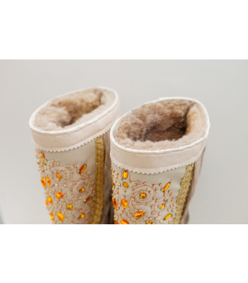 Унты женские "светло-серые" с отделкой ручного бисера