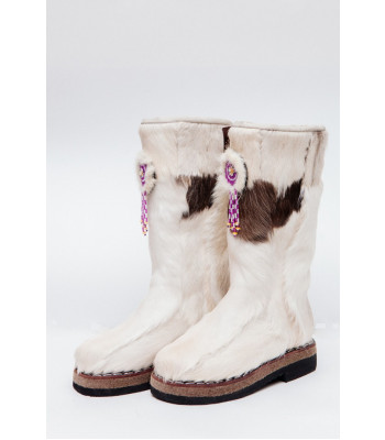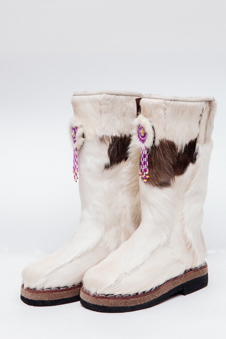 Унты из камуса северного оленя (светлый редкий оттенок) декорированной натуральной отделкой камуса