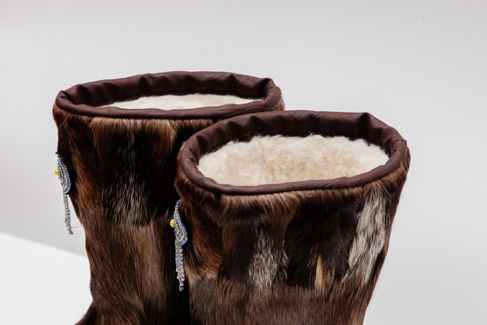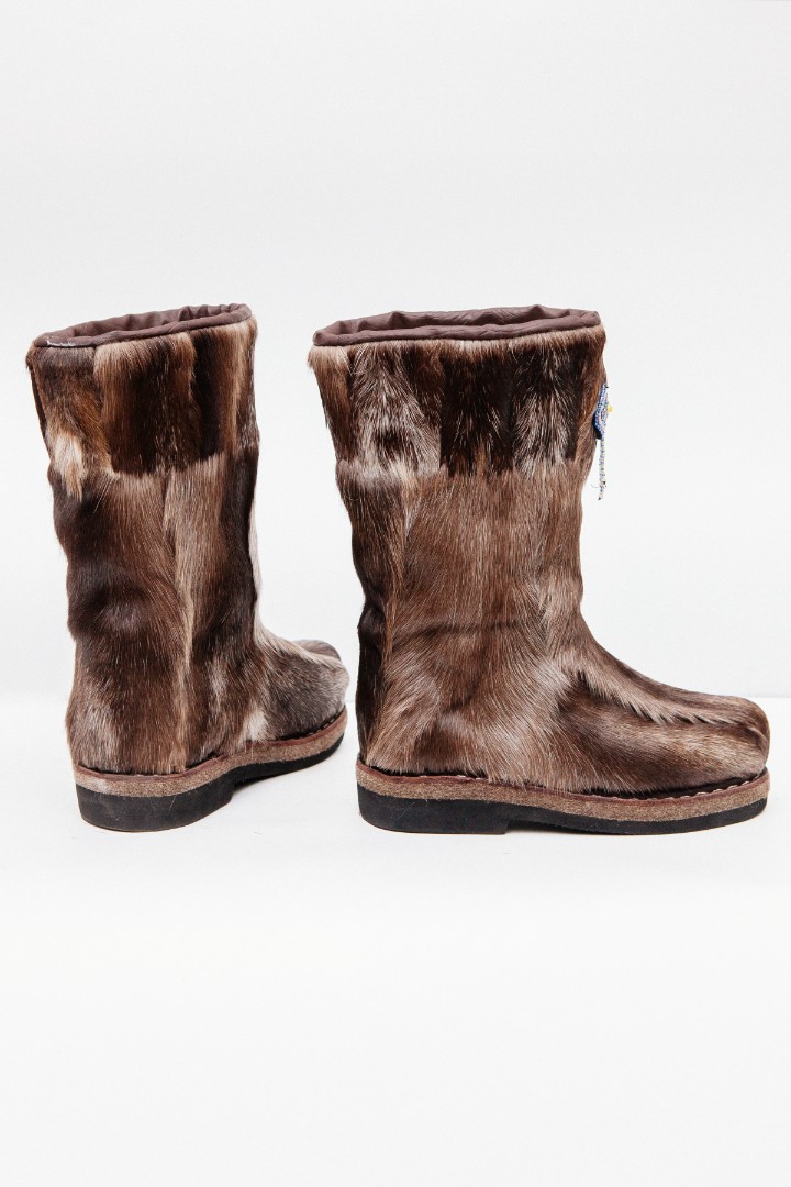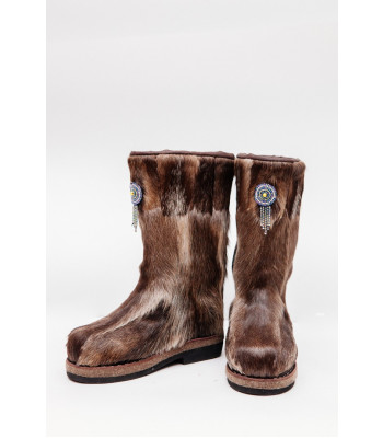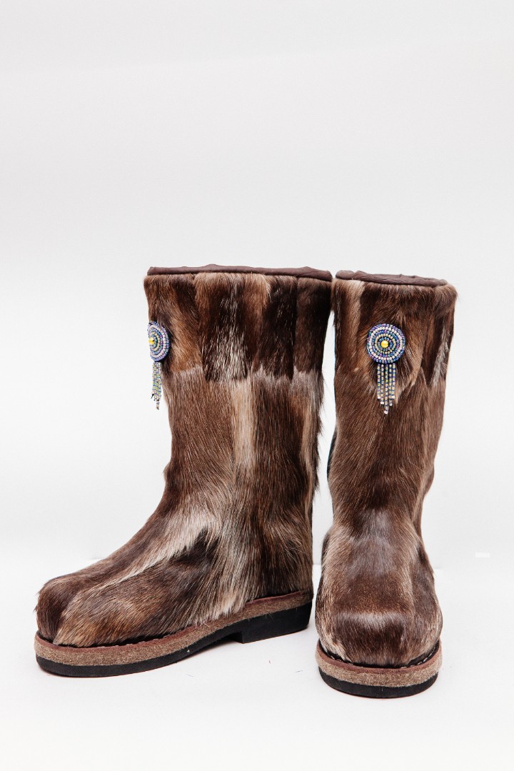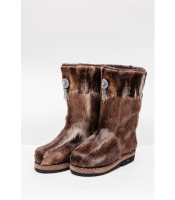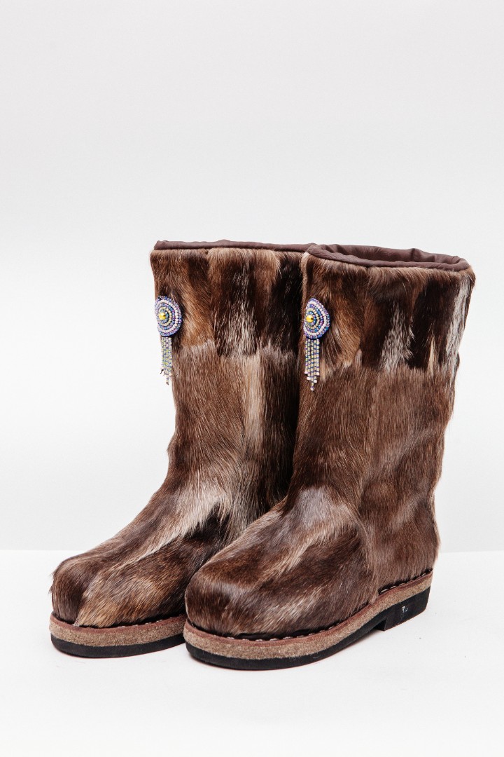 Унты из камуса северного оленя декорированной натуральной отделкой камуса
