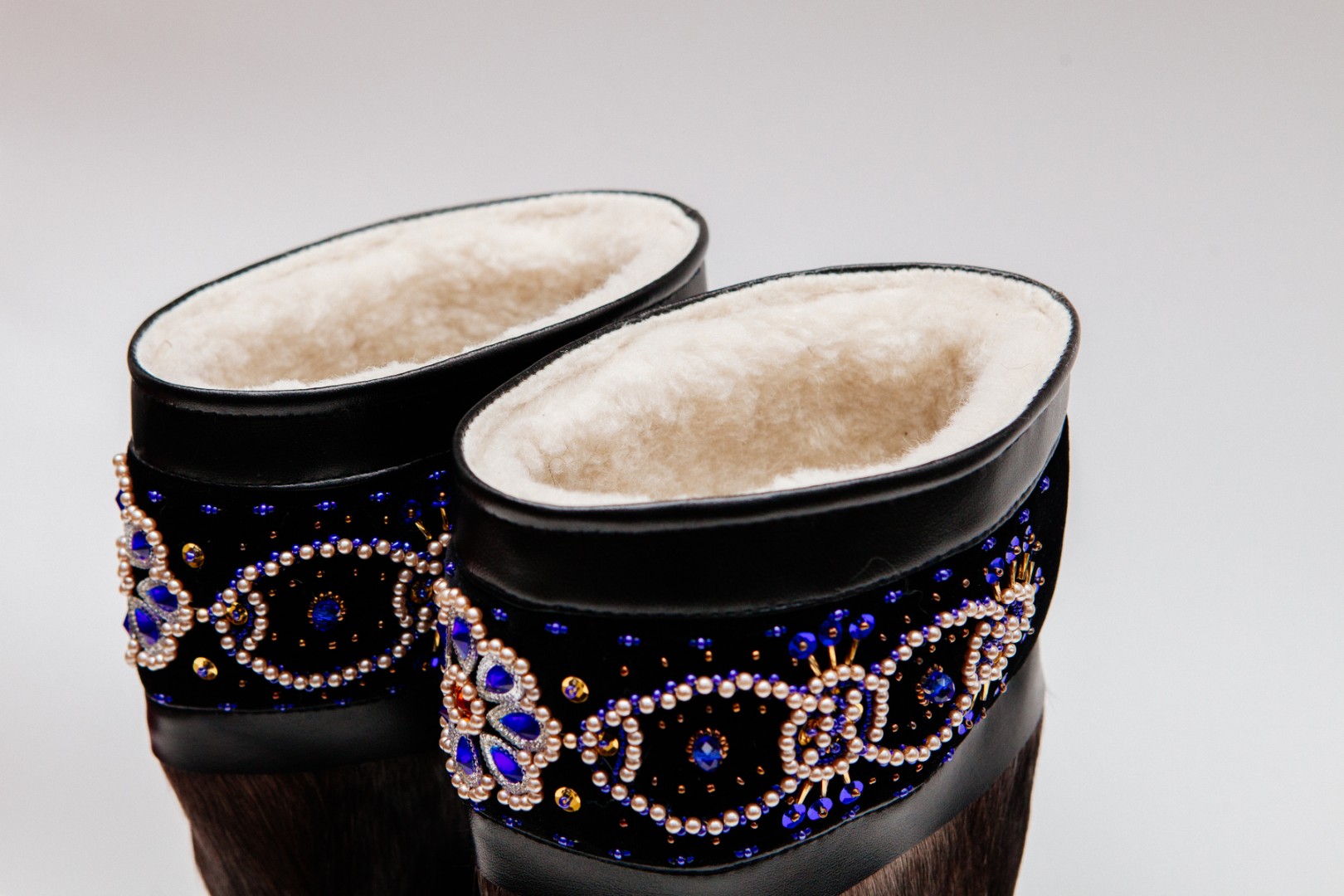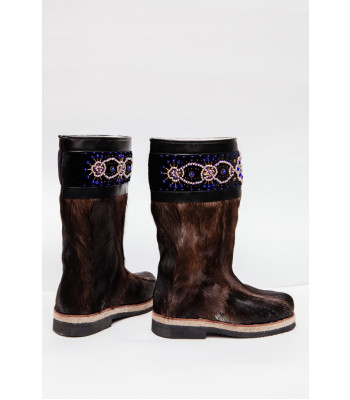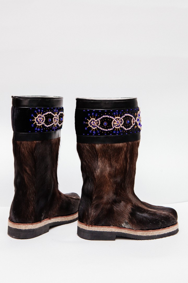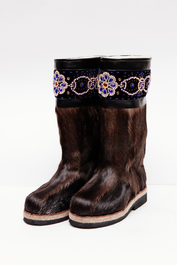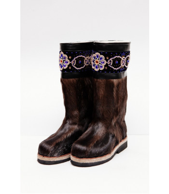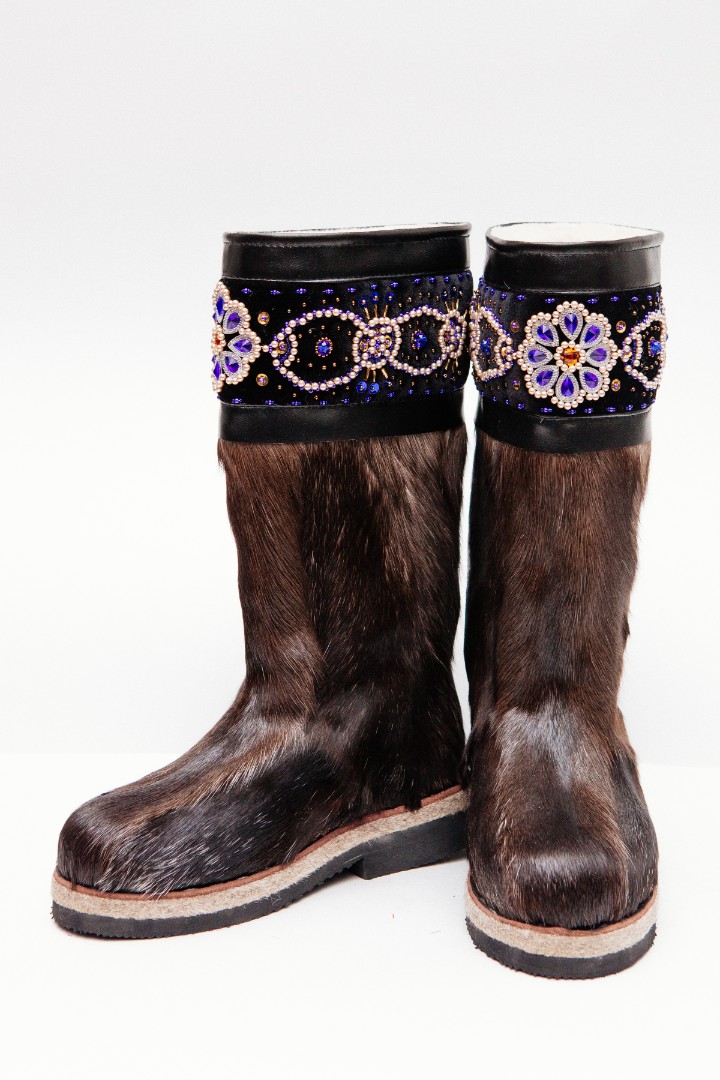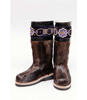 Унты из камуса северного оленя декорированной ручной вышивкой и бисером