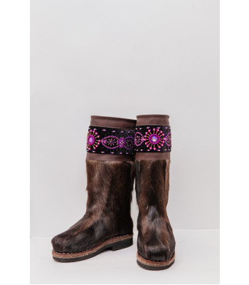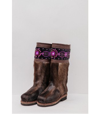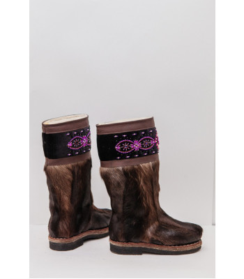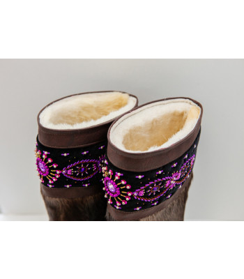Унты женские темные с отделкой из ручного бисера
