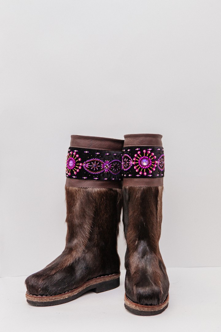 Унты из камуса северного оленя (светлый редкий оттенок) декорированной ручной вышивкой и бисером