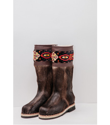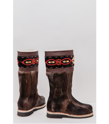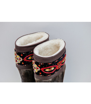 Унты женские темные с отделкой из ручного бисера