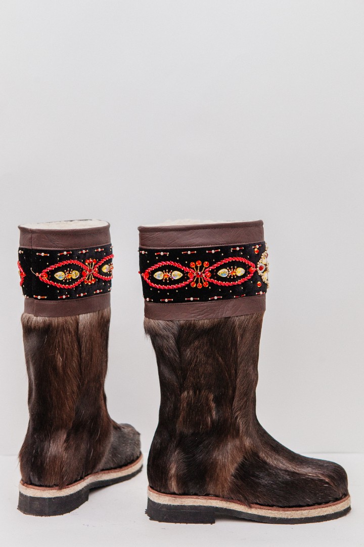Унты из камуса северного оленя (светлый редкий оттенок) декорированной ручной вышивкой и бисером